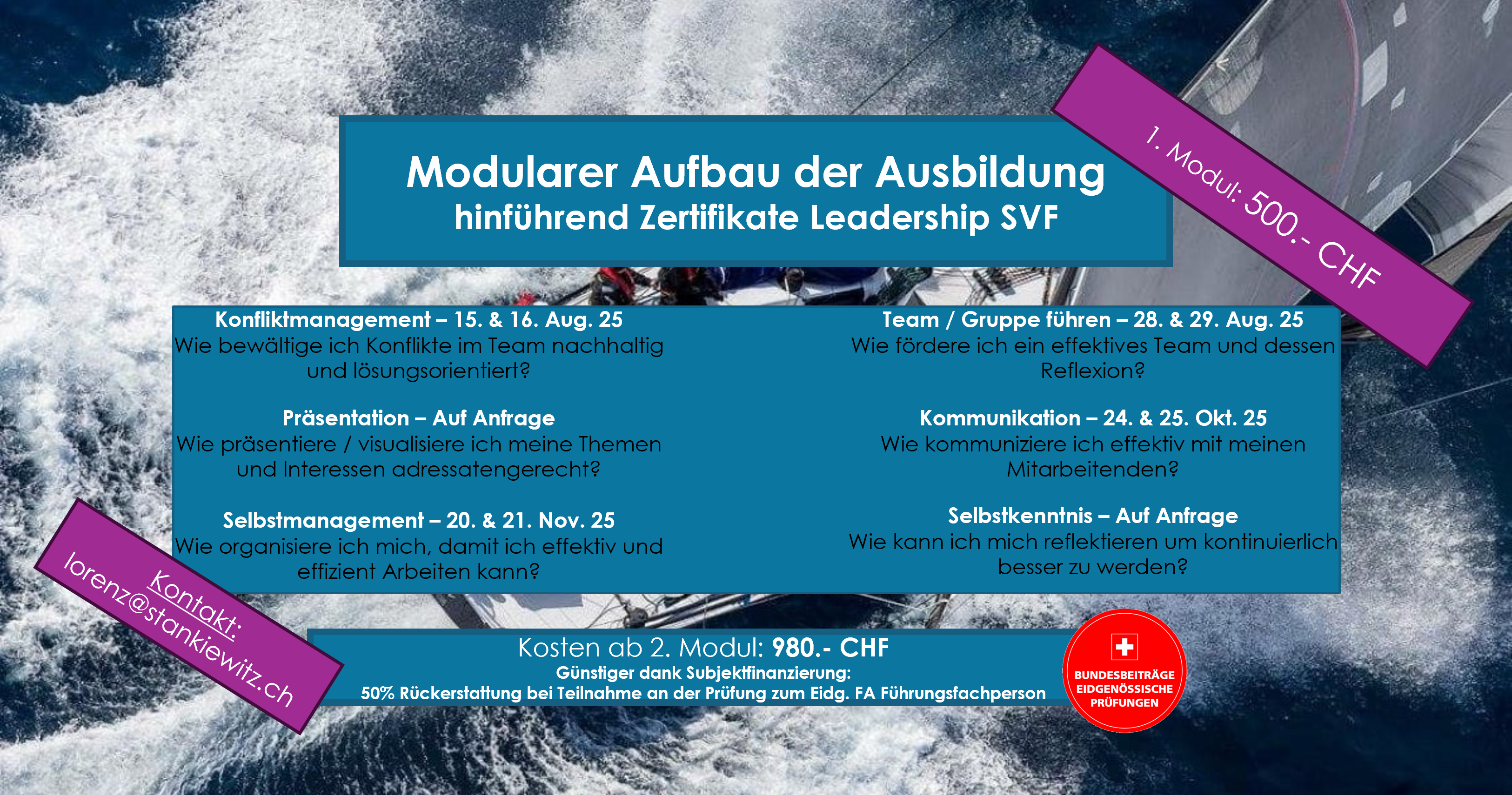 hinführend zum Eidg. Fachausweis Führungsfachfrau /-mann.